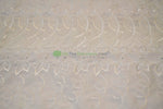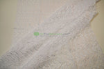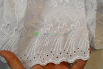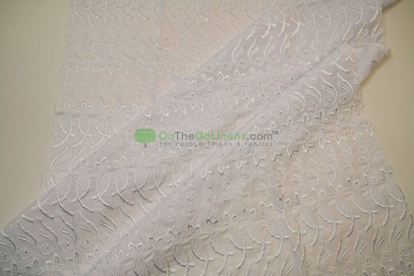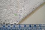This White Eyelet Embroidery Fabric measures 52 inches wide and is made from a durable 80% Polyester and 20% Cotton blend. Featuring an all-over blossom floral embroidery design, each flower showcases delicate cut-out eyelet details that add a timeless, elegant charm. The embroidery is crafted with a shimmery thread that catches the light, creating a subtle sheen and a soft, raised texture that feels luxurious to the touch.