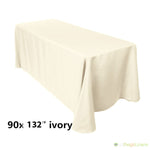 The 90" x 132" 6ft Polyester Table Drapes By Piece are top-quality tablecloths made with premium polyester and a GSM of 180. These seamless tablecloths are suitable for 30" x 72" rectangular tables and will drape elegantly to the floor on a standard 6ft table. Each tablecloth measures 90"x132". Available in white, ivory, and black.