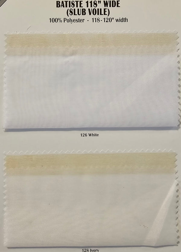 This 118" wide Batiste Slub Voile fabric is 100% Polyester and inherently fire retardant. With its Slub Silk texture, it's a popular choice for covering large and small rooms, as well as canopies and draping panels for events. The fabric is also available in 120 yard rolls, although splits may occur. Its convenient 60" tube and folded packaging make it easy to transport. Choose from a variety of colors to make this Sheer Voile fabric a part of your next big day.