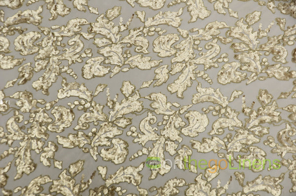 Wendy Sequins is an Embossed Embroidered Flower Sequins. This high-quality fabric features an embossed design and is sewn onto a durable mesh polyester backing. The sequins are expertly applied in a smooth, flat pattern, making it ideal for a variety of uses such as tablecloths, linens, costumes, and decorative pillows. It is also popular for its use in clothing and party rental items.