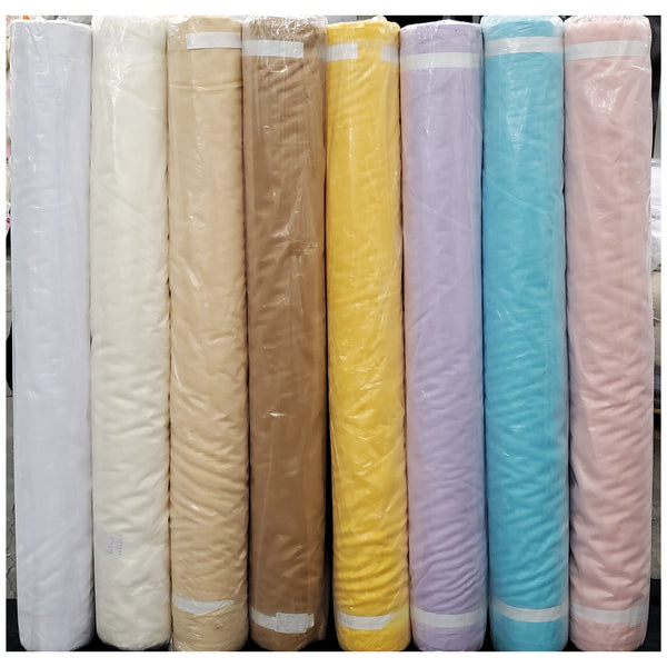 This 120" wide sheer Voile fabric is inherently fire retardant and perfect for covering large areas such as pipes and draping panels. The fabric is also versatile, making it suitable for creating canopies and thick swags, and it comes in a variety of colors. With its 120 yard length, it is guaranteed to meet your needs and is conveniently rolled on a 60" tube for easy transportation. Note that splits in the rolls may occur. Let our sheer Voile fabric contribute to your event's success.