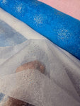 Sparkle Organza is a translucent material embellished with glistening diamond beads, providing a sophisticated addition to any event. Perfect for constructing a winter wonderland atmosphere, it can be utilized as chair sashes, tablecloths, overlays, and runners. The shimmering beads are strategically placed in groups, resulting in a breathtaking adornment that is sure to amaze attendees.