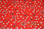 Bandana Cotton Blend is an ideal material for creating various items such as bandanas, apparel patches, art projects, and decorative pieces. The 80% polyester and 20% cotton blend broadcloth is perfect for making bandanas, decor pieces, apparel patches, headbands, face covers, non-medical face masks, and more. This fabric is 58/60" wide, making it versatile and suitable for many uses.