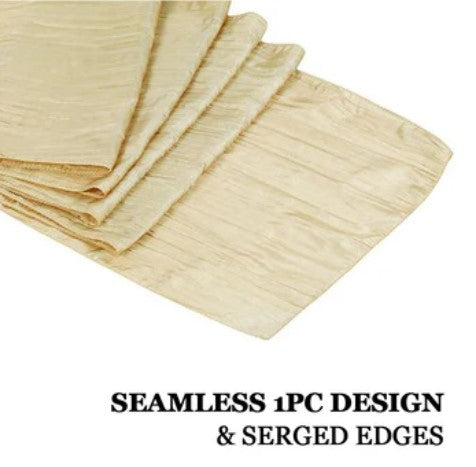 Our Crease Taffeta Table Runners are expertly crafted and can be tailored to the size of your choice. With a variety of colors to choose from, you have endless options to decorate your party. Each runner is meticulously sewn with a smooth, soft serge finish to lay perfectly flat on your table, allowing for decorations to be placed on top. Please allow 3-5 business days for us to customize your order. A minimum order of 12 pieces per color/size is required.