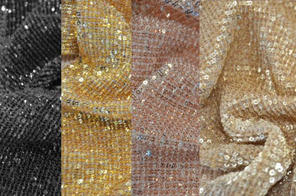 Pleated Glitz is a 3mm Sequins Gathered/pleated on a Mesh Fabric that is popular in various industries due to its easy and brilliant style. It features full all over Sequins embroidery on a pleated Mesh fabric that adds a touch of elegance to any garment or home decoration. The fabric has a full sequin coverage and is semi-sheer, making it suitable for creating tops, skirts, blouses, pillows, covers, drapes, tablecloths, and other event decorations.