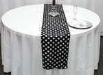 Polka Dot Lamour Satin Print Table Runners | Polka Dot Satin Table Runner | 60" Wide | White Black |