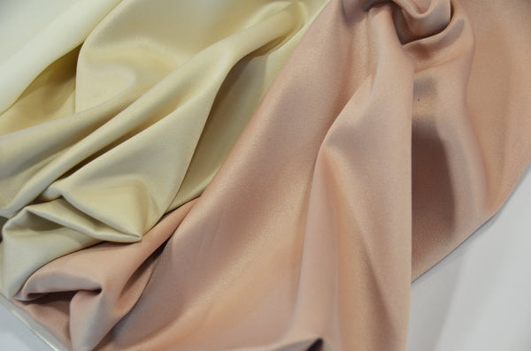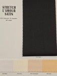 Stretch L'amour Satin is a Semi Dull Heavy Spandex Satin. Soft flowy and silky to the touch. Fabric has a 2 way stretch with about 5% spandex. This L'amour Stretch can be used to make tight and or fitted dresses, gowns, tops, and bridal wear.