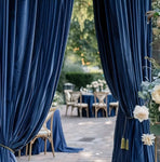 Our Stretch Velvet Event Drapery Panels offer the same luxurious feel and drape as traditional velvet, but with the added benefit of being much easier to work with. The fabric boasts a subtle sheen and ultra-soft hand, with 4-way stretch and 40% stretch across the grain for optimal movement. These elegant drapes feature a 6" pocket on top and are left natural on the sides. The edges of the panels are not cut or sewn, but we do provide a clean serge finish on the bottom portion or the option to add another 6" pocket for an added cost. Please note that a minimum order of 6 pieces is required and it takes 3 to 5 business days for us to manufacture the panels.