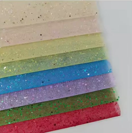 Tulle Glitter with Sequins Fabric by the Yard | Tulle filled with Glitter and Sequins | 60" Wide | Multiple Colors |