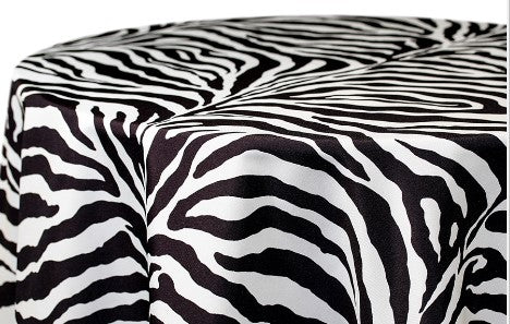 White Black Zebra Lamour Satin Tablecloth features a unique zebra print design on a high-quality Semi Dull Heavy Satin fabric. Unlike other printed polys, our satin has a luxurious and smooth texture for a superior touch. The print is applied with a 3D style technique, providing depth and vibrant colors for a stunning satin print.